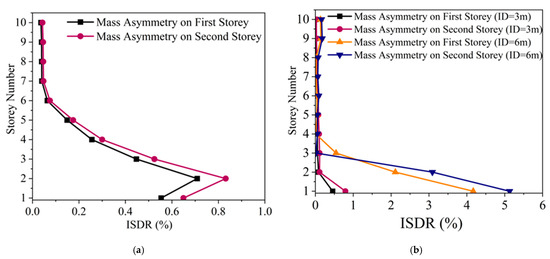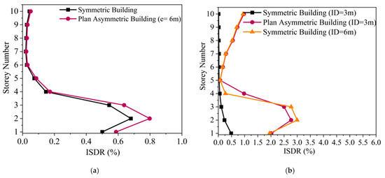 (a) ISDR of a plan asymmetric building under an earthquake; (b) ISDR of a plan asymmetric building under a tsunami.