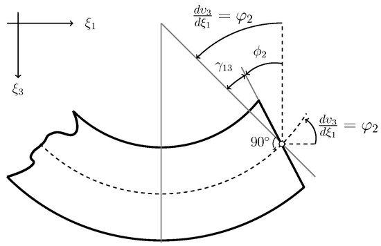 Taking into account the definition of the displacement field , we may substitute this expression given that represents the strain due to the shear effect obtaining in the following equation (see Figure 4):