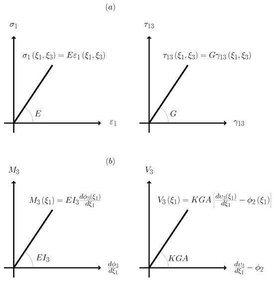 The definition of curvature is equivalent to the bending moment concept given that increases and decreases proportionally to ; therefore, and according to Timoshenko’s seminal work, the bending moment is defined according to Equation (9) such that and . Then