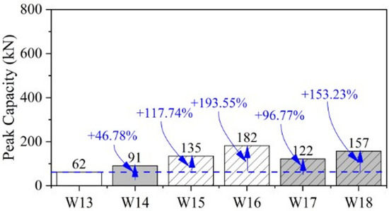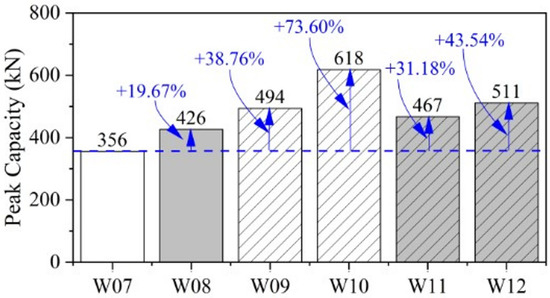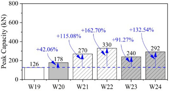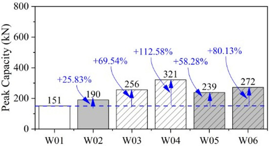 3.2. Peak Capacity and Load vs. Deflection Curves