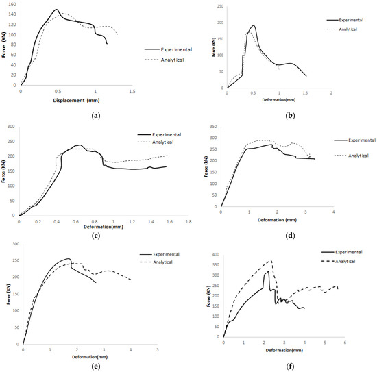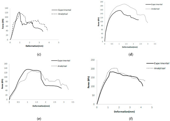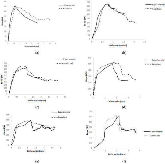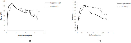 | ID | Peak Load—EXP (kN) | Peak Load—Analytical (kN) | Difference (%) | Axial Deformation at Peak—EXP (mm) | Axial Deformation at Peak— Analytical (mm) | Difference (%) |