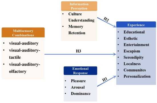 Before proceeding to the specific literature review, it is necessary to clarify the relationship between the research questions and hypotheses proposed in this paper to enhance the clarity of the research structure and consistency of theoretical logic. The paper centers its research questions on multi-sensory interactive experiences in the context of digital museums and constructs three hypotheses based on these questions. However, to avoid fragmenting the analytical framework, the causal pathways between the various elements must be theoretically clarified. Specifically, the paper begins with technology-driven sensory stimulation as the starting point and sequentially explores its influence on visitors’ emotional states, sense of presence, and information cognition. This process constructs a theoretical model of multi-sensory interactive experiences. Each research question corresponds to key variable relationships within the model, and the corresponding hypotheses serve as empirical tests of these relationships. This approach establishes a close connection between the theoretical framework and the empirical pathways, enhancing the research’s overall coherence and conceptual cohesion.