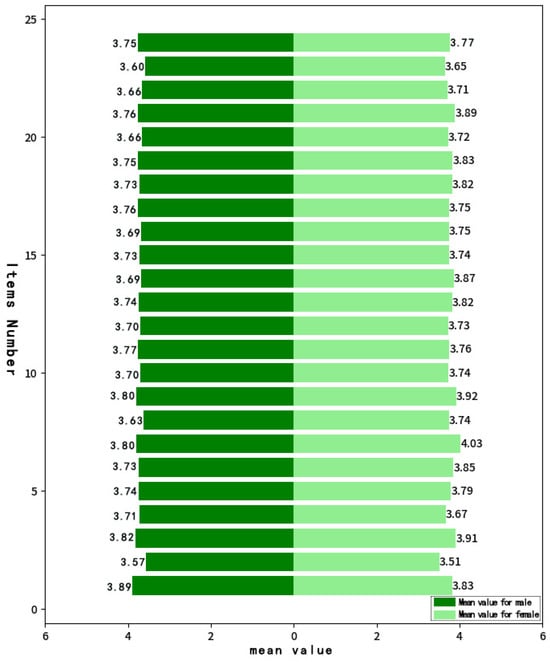 A total of 325 samples were analyzed to gain insight into the demographic distribution of the research sample. Following the sorting of the questionnaire samples, it was determined that 181 males and 144 females participated in the survey, representing 55.69% and 44.31%, respectively, of the total number of respondents. This suggests that the number of male participants was slightly higher than that of female participants. With regard to age, the majority of respondents were aged 25–34, representing 36.62% of the total, followed by 105 individuals aged 18–24, accounting for 32.31%. The survey reveals distinct demographic patterns among museum attendees. The visitor base is predominantly composed of younger demographics, with academic qualifications showing significant elevation—nearly half (48.2%) of participants hold bachelor’s degrees, while an additional 15.4% possess graduate-level education or higher, indicating over 60% of respondents have attained tertiary education. Regarding visitation habits, 46.2% reported annual museum visits, complemented by 25.3% attending biannually, constituting a combined majority (71.5%) who engage with cultural institutions on an intermittent basis. This attendance pattern demonstrates that most visitors maintain periodic rather than frequent engagement with museums. The sample encompasses substantial demographic variability across gender distribution, age cohorts, educational backgrounds, and cultural consumption frequencies, ensuring representative diversity in respondent profiles.