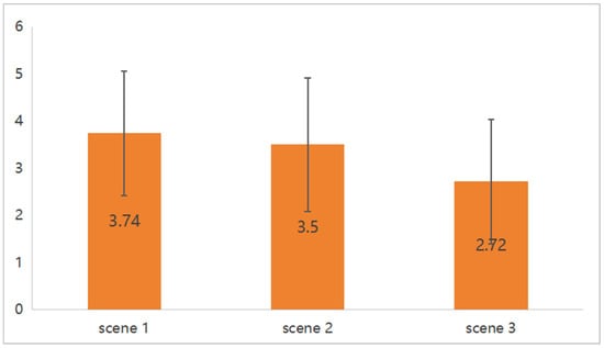 Measuring emotion is of key importance in tourism research, with a particular focus on its role in driving stimulus exposure and tourist experience. In this study, we adopted the three-dimensional pleasure–arousal–dominance (PAD) model [], which systematically quantifies emotional states through the three dimensions of pleasure-displeasure (e.g., happy and hopeful), arousal-nonarousal (e.g., excited and calm), and dominance-neglect (e.g., sense of control and helplessness). Among them, the pleasure dimension reflects individuals’ positive emotions (e.g., satisfaction and joy) in specific situations, the arousal dimension characterizes the degree of emotional activation (e.g., stimulation and inspiration) [], and the dominance dimension measures the ability of emotions to regulate behavior []. This study captures the dynamic emotional feedback triggered by multisensory interactions with a validated measurement tool, providing empirical support for analyzing the role of emotions in immersion experiences.