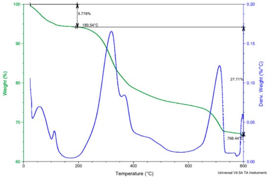 TGA is widely used across various fields, including chemistry, materials science, pharmacology, and in the food industry [41]. For the development of this analysis, a TGA-Q500/V20-13-Build-39 instrument was used, following the guidelines established by ASTM standard E-1131-08, as shown in Figure 7. Additionally, the test was conducted under the following controlled gas flow conditions: N2 balance at 40 mL/min, O2 furnace at 60 mL/min, N2 at 60 mL/min, and synthetic air at 60 mL/min.