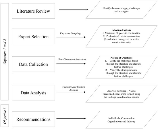 - Wells, B.; Senaratne, S.; Mirza, O.; Camille, C. Overcoming challenges faced by female construction management graduates: An exploratory study in Australia. Int. J. Constr. Manag. 2024, 1–9. [Google Scholar] [CrossRef]