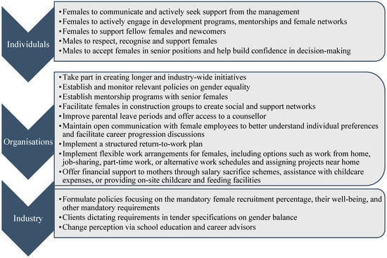 - Bryce, T.; Far, H.; Gardner, A. Barriers to career advancement for female engineers in Australia’s civil construction industry and recommended solutions. Aust. J. Civ. Eng. 2019, 17, 1–10. [Google Scholar] [CrossRef]
