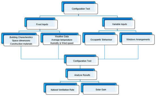 - Fixed inputs, such as building characteristics, materials, spatial dimensions, and climatic data (temperature, humidity, wind speed), remain constant across all simulations to ensure comparability.