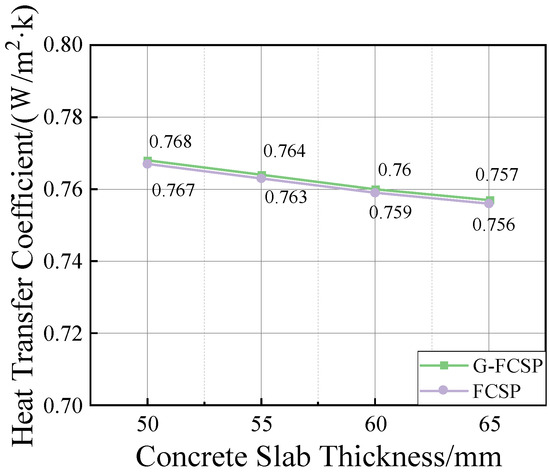 Heat transfer coefficient of wallboard with different concrete slab thickness.