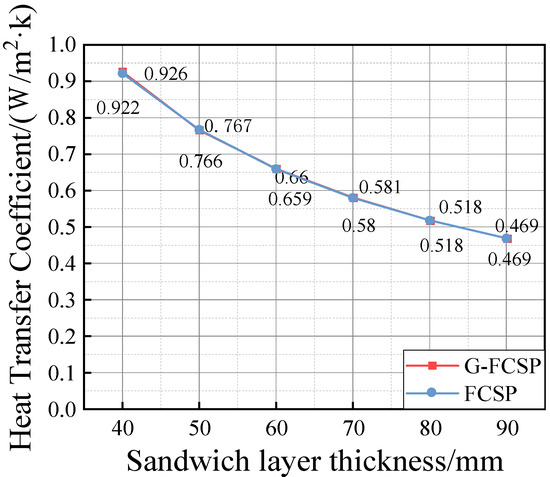 Heat transfer coefficient of wallboard with different sandwich layer thickness.