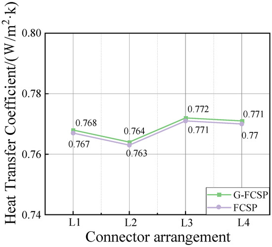 The change curve of heat transfer coefficient of wallboard with different arrangements of connectors.