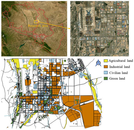 The distribution of the partial land use types in Lanzhou New District is shown in Figure 3, mainly including industrial land, civil land, agricultural land, and green land.