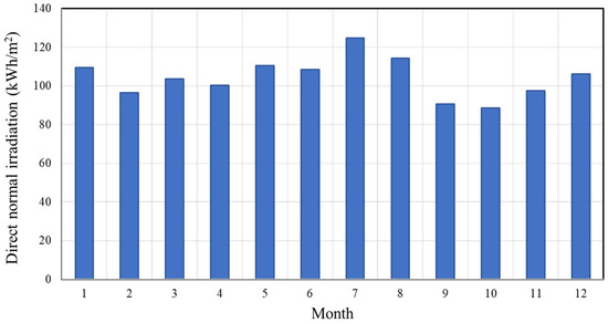 Monthly average direct solar radiation in Lanzhou New District.