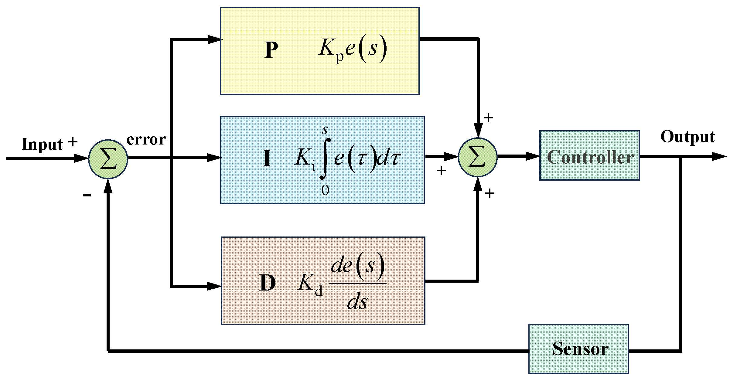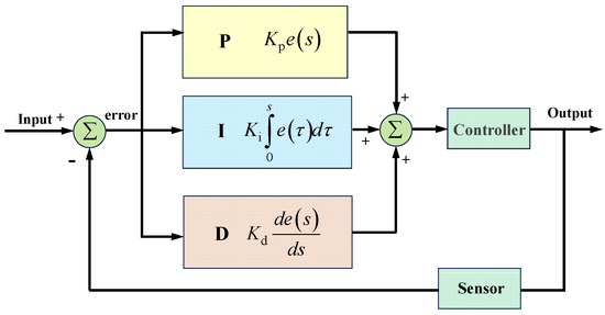 PID (Proportion, Integral, Differential) control algorithm is a classical feedback control strategy [36,37,38,39]. As a typical mathematically based optimization algorithm, its core framework is illustrated in Figure 1. This algorithm achieves dynamic error correction through continuous adjustment of control outputs derived from a linear combination of error terms. The incremental PID variant implements control quantity computation based on differential equations, replacing conventional absolute output schemes. This approach enhances computational efficiency while simultaneously improving system stability through inherent noise suppression capabilities of differential operations.