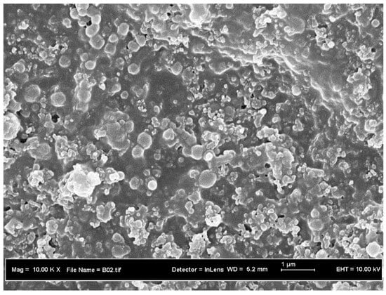 The particle morphology of nano silicon is shown in Figure 2. As can be seen, it is obvious that nano silicon particles are crystalline materials, which vary from an irregular to a spherical shape, and this morphology is similar to the findings of [59]. This makes it suitable for application in cementitious materials.