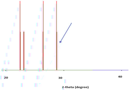 The pattern of X-ray diffraction of nano silicon is depicted in Figure 3. It is obvious from this figure, narrow peak at 2θ = 28.7° confirmed the presence of nano silicon particles, which indicates crystalline materials with the equivalent corresponding orientation of (h, k, l) value at (1, 1, 1). This is comparable to findings of [10], where they reported very narrow peak due to highly crystalline structure of nano silicon particles. However, other peaks are suspected to be due to minor impurities or secondary phases such as residual reactants, oxides of silicon (SiO2) or byproduct from synthesis process, sample holder or polymorphic forms.