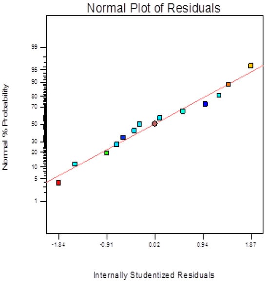 In this section, the experimental results, type of mathematical model, results of the ANOVA of the regression model, and plots of the residuals of the experimental responses are presented and discussed. Furthermore, results for the internally studentized residual and normal probability plots are discussed. In addition, the quadratic response surface plot in the optimization of variables is illustrated as a 3D graph, and thus, optimal regions necessary to achieve best experimental response are established using desirability plots. Table 4 shows the experimental results with respect to capillary water absorption.