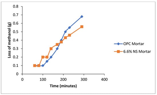 Gas permeability through test specimens was determined based on laboratory conditions and in accordance with a standard procedure established by [57]. To determine the gas transport properties, high purity liquid methanol was used as a gas source. Samples of 50 mm × 50 mm × 50 mm size were dried in an oven at 105 °C for 24 h. They were then placed on top of a glass cell containing predetermined quantity of methanol and sealed with sealant to avert potential loss. The lower two-third of the glass was then submerged in a water bath. The temperature of the water bath was kept at 40 °C based on the recommendation of [47]. The variation in mass with time due to vaporization of methanol was recorded until a steady state mass loss was reached.