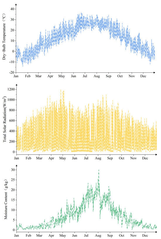 The simulation utilized he hourly meteorological data for Beijing, covering an entire year 8760 h. The specific meteorological parameter data is presented in Figure 4.