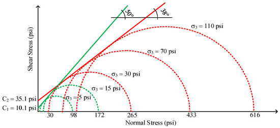 Mohr–Coulomb failure criteria curves for the backfill material [3].