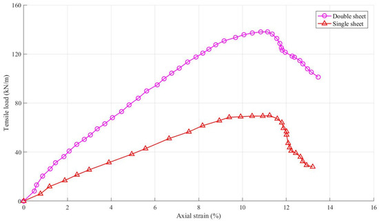 Load–deformation curves of the geosynthetics material, tested according to ASTM D4595-17 [36].
