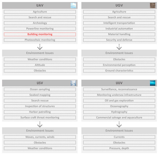 Unmanned system types and their critical environmental factors. Adapted with permission from [54].