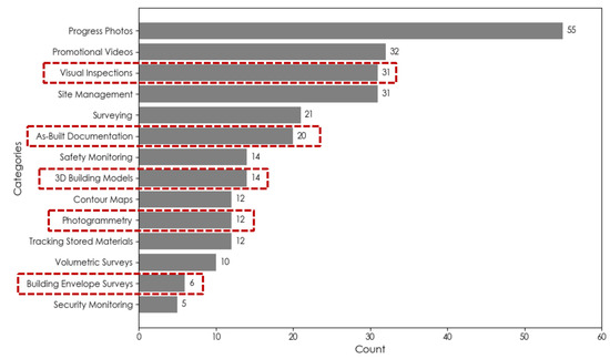 Drone applications in the built environment—results from surveyed companies. Adapted with permission from [58].