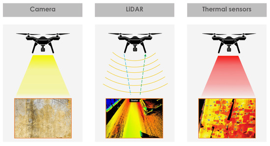 Difference in drones equipped with cameras, LiDAR, and IRT sensors. Adapted with permission from [55].