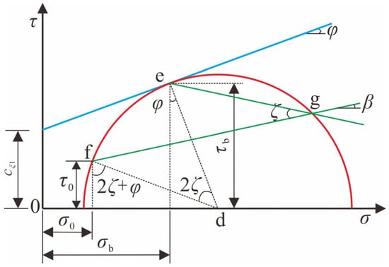 The angle β is determined using an iterative trial method as follows: Firstly, an initial value β1 is assumed, and the equivalent stresses σ0 and τ0 are calculated by Equations (9) and (10). Secondly, the angle ζ is established through the geometrical relationship in Figure 6, and a new value β2 can be computed by substituting it into Equation (20). This process is repeated until the difference between the assumed value β1 and the calculated value β2 satisfies the accuracy requirement.