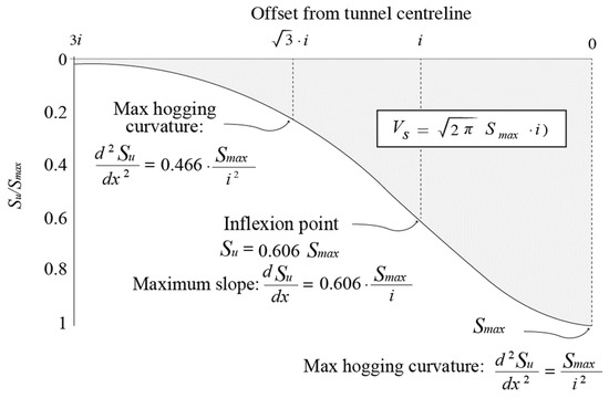 where Smax is the maximum settlement, i is the inflection point, and x is the horizontal distance from the tunnel’s center.