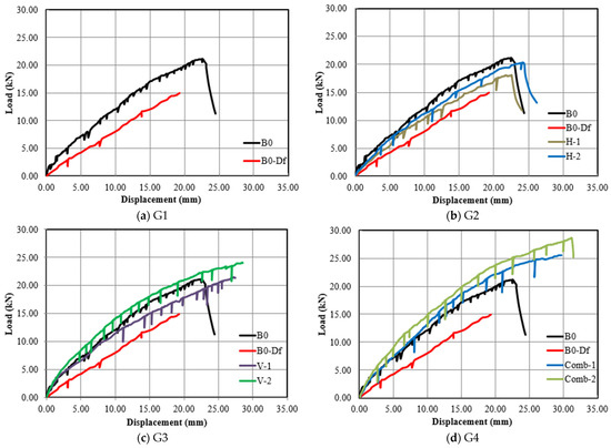 - Strengthened beams showed delayed crack initiation, reduced crack widths, and improved post-cracking ductility due to the strain-hardening properties of SHCC and the crack-bridging effect of GF mesh.