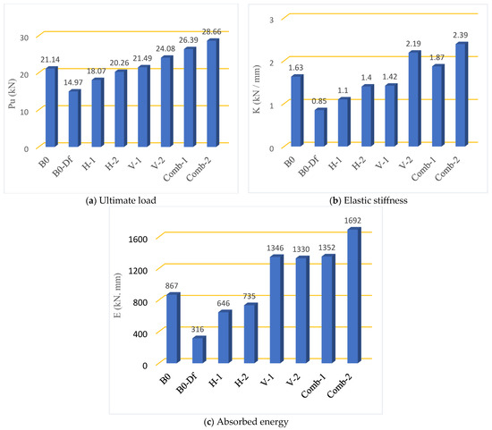 | Group | Beam’s Name | Ultimate Stage | Initial Stiffness (K) | Absorbed Energy (E) | |||||||