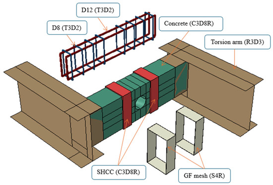 Hamoda A, Yehia SA, Ahmed M, Abadel AA, Sennah K, Patel VI, Alghamdi H. Torsional Strengthening of RC Beams with Openings Using Hybrid SHCC–Glass Fiber Mesh Composites. Buildings. 2025; 15(13):2237. https://doi.org/10.3390/buildings15132237