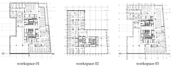 The focus on Belgrade was a deliberate strategy to ensure a shared cultural, legislative, and economic context across cases, which allowed for a more coherent comparison of spatial and organizational influences on employee experience. Additionally, practical feasibility was a determining factor in finalizing case selection. All three workspaces are located within the same commercial office complex, providing a consistent external setting (Figure 1). Notably, Case 1 and Case 3 share a matching structural layout, which enables a particularly meaningful spatial comparison. While additional companies that met the primary inclusion criterion (i.e., having been designed by the same author) were approached, not all granted permission for survey implementation. Therefore, the final selection represents a balance between conceptual relevance, contextual control, and empirical feasibility.