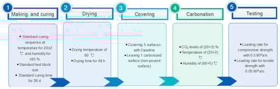 According to the specification requirements [], a rapid carbonization test was conducted; the test process and main parameter settings are shown in Figure 1.