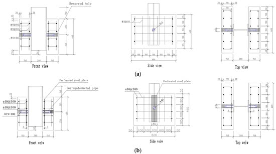 Specimen dimensions: (a) Ordinary Shear Pocket Joint; (b) Reinforced Shear Pocket Joint.