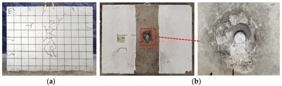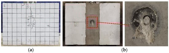 Failure phenomenon of W13-C40-G80-D40-a: (a) Exterior surface of concrete slab; (b) Inner surface of concrete slab.