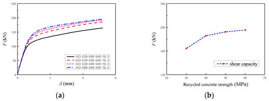 Influence of the RAC strength on the shear capacity of joints: (a) Load–slip curves; (b) Shear capacity analysis.