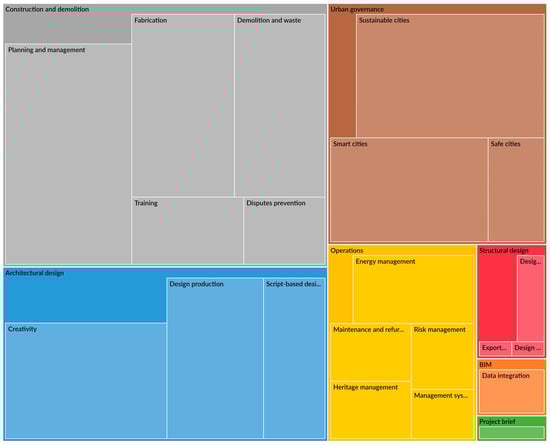 Figure 8 presents a thematic tree for operations. In building operations, Yazdi et al. [47] found that GenAI has revolutionised risk management by providing quick, comprehensive, well-organised, detailed, technically correct, and pertinent strategies when compared to risk assessment generated by human experts. Comparatively, human responses were vague, broad, and followed a narrative style and needed more time to produce. The study suggests that GenAI’s role in risk management is promising when complemented with human expertise and judgement using data-driven dashboards. These dashboards could enable real-time reporting and flag potential issues in building operations.