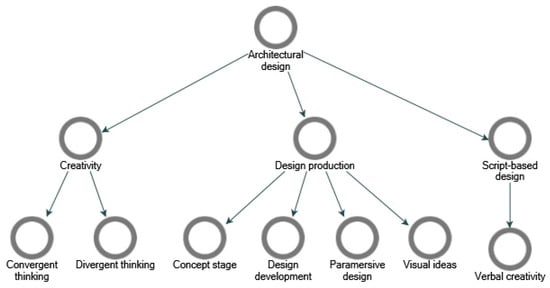 Figure 3 presents a thematic tree for the project brief, highlighting the role of GenAI in developing project briefs. GenAI has shown promising results in the early stages of a project’s lifecycle—strategic definition and project brief stage. The design research on the effectiveness of GenAI in supporting architects by Tan and Luhrs [43] concluded that GenAI shows an encouraging potential for developing project briefs. In the early project brief stage, architects often rely on the client to clarify needs and expectations about the project and their experience of working in the field. This convergent thinking process, coupled with information about projects in GenAI, assists in producing realistic and creative project briefs. This kind of tool offers architects alternative design and rendering options that are creative and time-efficient [43].