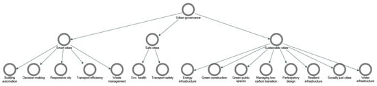 Figure 9 presents the urban governance thematic tree. In urban governance, Alahi et al. [21] linked smart home automation and smart cities and urban governance. They postulated that GenAI could collectively analyse the information harnessed from smart homes to help in smart city planning. Considering energy consumption as an example, peak operation hours favoured operation settings and endless opportunities to explore and improve the ways domestic environments function more accurately. Fan et al. [29] found that urban centres may optimise energy use and lower carbon emissions by combining AI algorithms with renewable energy sources like solar and wind power. This will ensure ecologically friendly urban centres and lower energy prices for businesses and inhabitants. Smart urban centres may become more productive, efficient, and environmentally sustainable by utilising these technologies, ultimately improving the living standard for residents.