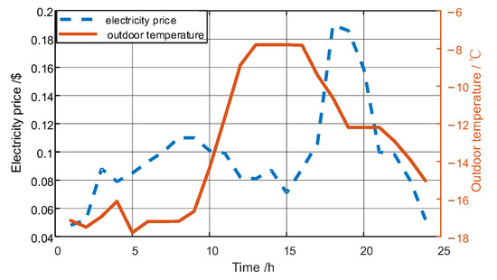 The electricity price and outdoor temperature curves.