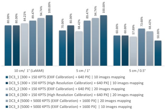 | DC3_1 | Exif-based calibration | 300/150 KPTS + 640 PX | 10 images | Recall @ (10 cm, 1°) |