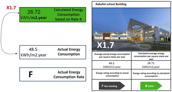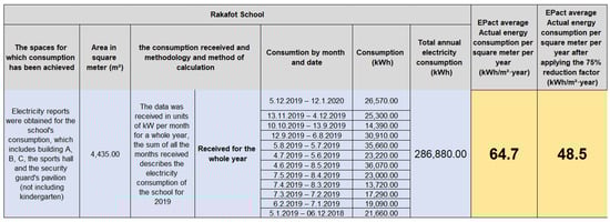 In addition, the analysis of Rakafot School indicated that its actual energy consumption was 1.7 times larger than the estimated values. Consequently, based on the observed energy consumption levels, both the Porter Building and Rakafot School warrant an F rating.