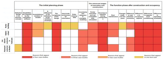 In addition to numerical and rating-based comparisons, we conducted a qualitative analysis to identify the root causes of performance gaps observed across the case studies. This involved reviewing simulation outputs, certification documentation, and design reports. Where possible, we conducted informal interviews and held correspondence with architects, facility managers, and municipal representatives. These inputs were synthesized to map out the sources of discrepancies at various project stages—design, simulation, and occupancy—as summarized in