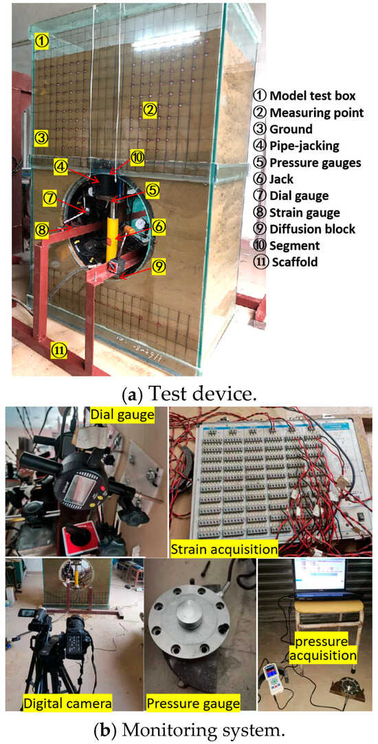 The experimental apparatus comprises a model test box, a jacking system, and a monitoring system (Figure 2).