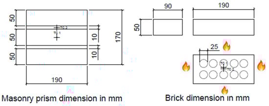 The thermocouple’s location in masonry prism and fire exposure from four sides.