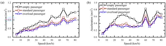 - Wu, Z.; Zhang, N.; Yao, J.; Poliakov, V. Analysis of Train Car-Body Comfort Zonal Distribution by Random Vibration Method. Appl. Sci. 2022, 12, 7442. [Google Scholar] [CrossRef]