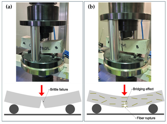 Failure mode during flexural test: (a) CONTROL specimen; (b) AFM specimen.