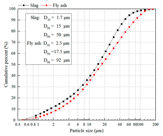Particle size distribution of slag and FA.